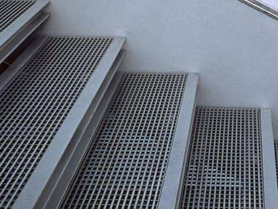 樓梯鋼格板是由鋼格板加工而成的(鋼格板是用扁鋼按照一定的間距和橫桿進行交叉排列,并且焊接成中間帶有方形格子的一種鋼鐵制品)。該產品表面一般用熱鍍鋅、電鍍鋅處理。
