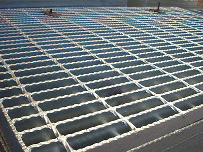 熱鍍鋅鋼格柵板也稱作熱鍍鋅格柵板,熱鍍鋅格柵板是由負載扁鋼和橫桿按一定間距經緯排列,在高壓電阻焊機上焊接而成原板,經切割、切口、開孔、包邊等工序深加工而成客戶要求的成品。